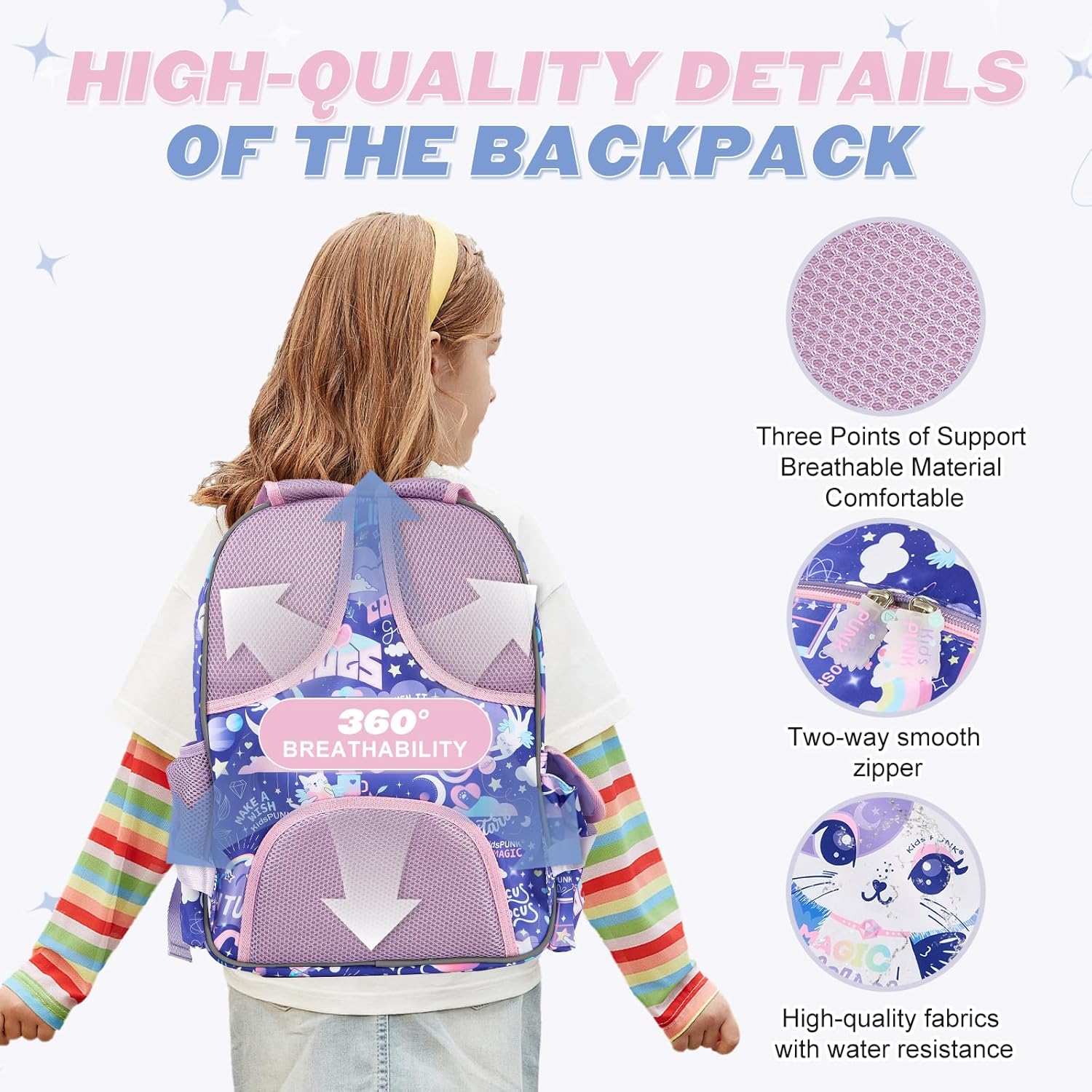 [Water-resistant and Dustproof]: Constructed with high-quality materials, the backpack is water-resistant and dustproof. Reflective strips on the front and sides improve visibility and ensure your child's safety. ★ One-year Warranty: For any product quality issues, please contact us for a replacement. Ideal for 6 to 12-year-olds, these school backpacks for children are both practical and comfortable.