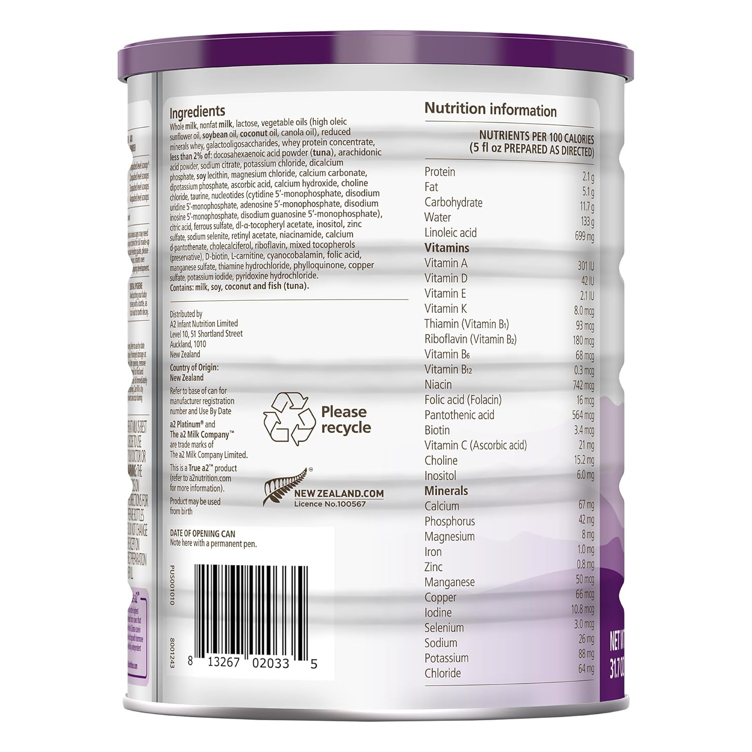 A2 Platinum® Infant Formula for Babies 0-12 Months, Natural Milk-Based Powder with Iron. Nutritionally complete, pure A2 milk - 14.1 oz can.
