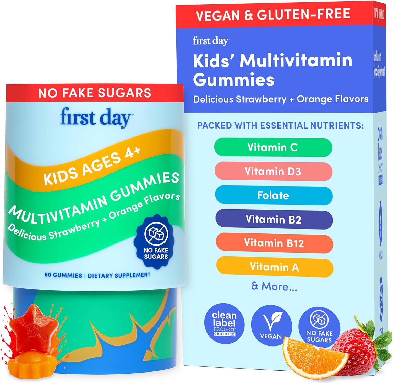 Discover the power of First Day's Children's Essential Vitamins, a expertly crafted organic fruit and vegetable blend, filling crucial nutritional gaps for your child's growth, energy, and focus.