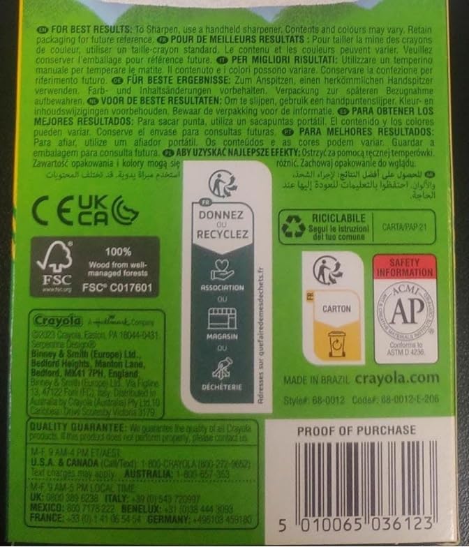 12 coloured pencils, ideal art tools for children and adults Long-lasting, pre-sharpened Bright, vibrant and intense colours that draw smoothly on paper and are ideal for mixing and blending Premium quality art tools made from reforested wood Ages 6
