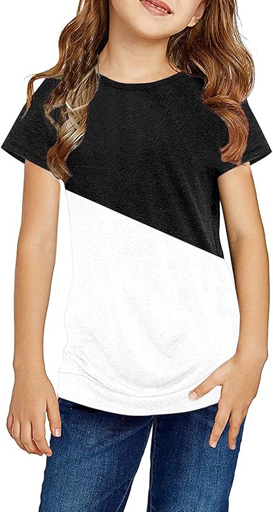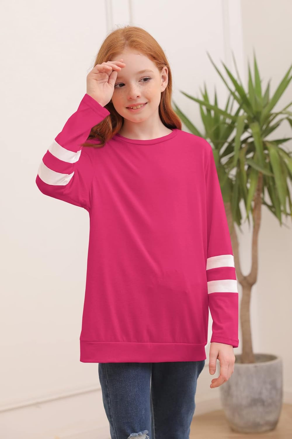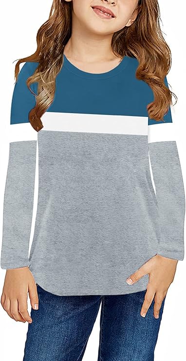 Ebifin Girls Casual Short/Long Sleeve T Shirts Kids Loose Soft Striped Color Block Tunic Tops, Tees Blouses Size 4-15 Years