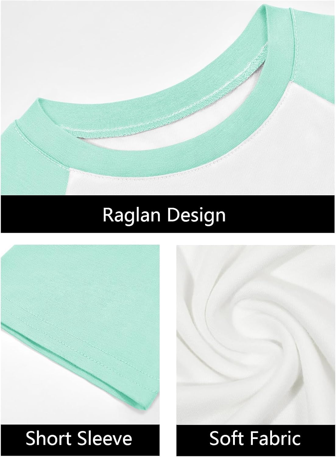 Premium Fabric: Lightweight and breathable high quality fabrics are chosen to ensure that you kids stay cool and comfortable in the hot summer months, and you kids won't feel stuffy even after long hours of outdoor activities/baseball/athletic, perfect for summer wear Raglan Sleeve: The raglan sleeve also visually elongates the body and attracts children's attention with different colors on the sleeve. For children's clothing, this design enhances comfort and adds a sense of style Color Block Design: The unique color blocking design on the t-shirt/shirt/tee/tees/tops is not only fashionable and energetic, which can attract the children's love, but also can show the personality and creativity, which is suitable for a variety of occasions Design: Designed with a cozy round neckline and short raglan sleeves, it provides great comfort and freedom of movement for a variety of daily and outdoor activities, allowing kids/girls/youth to be more comfortable while playing Easy to match: Whether paired with jeans, shorts or skirts, this t-shirt will easily fit into a variety of outfits, showing off your kids' youthful energy and sense of style. Suitable for girls aged 5-14 years