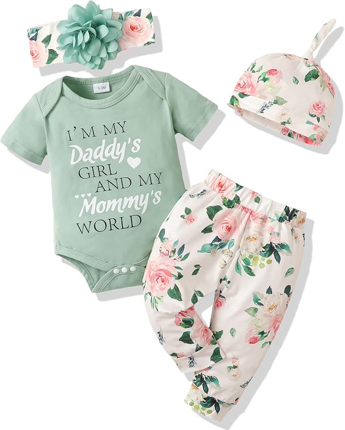 Renotemy Newborn Infant Baby Girl Clothes Summer Outfits Infant Romper Pants Cute Toddler Girl Clothes Gift Set