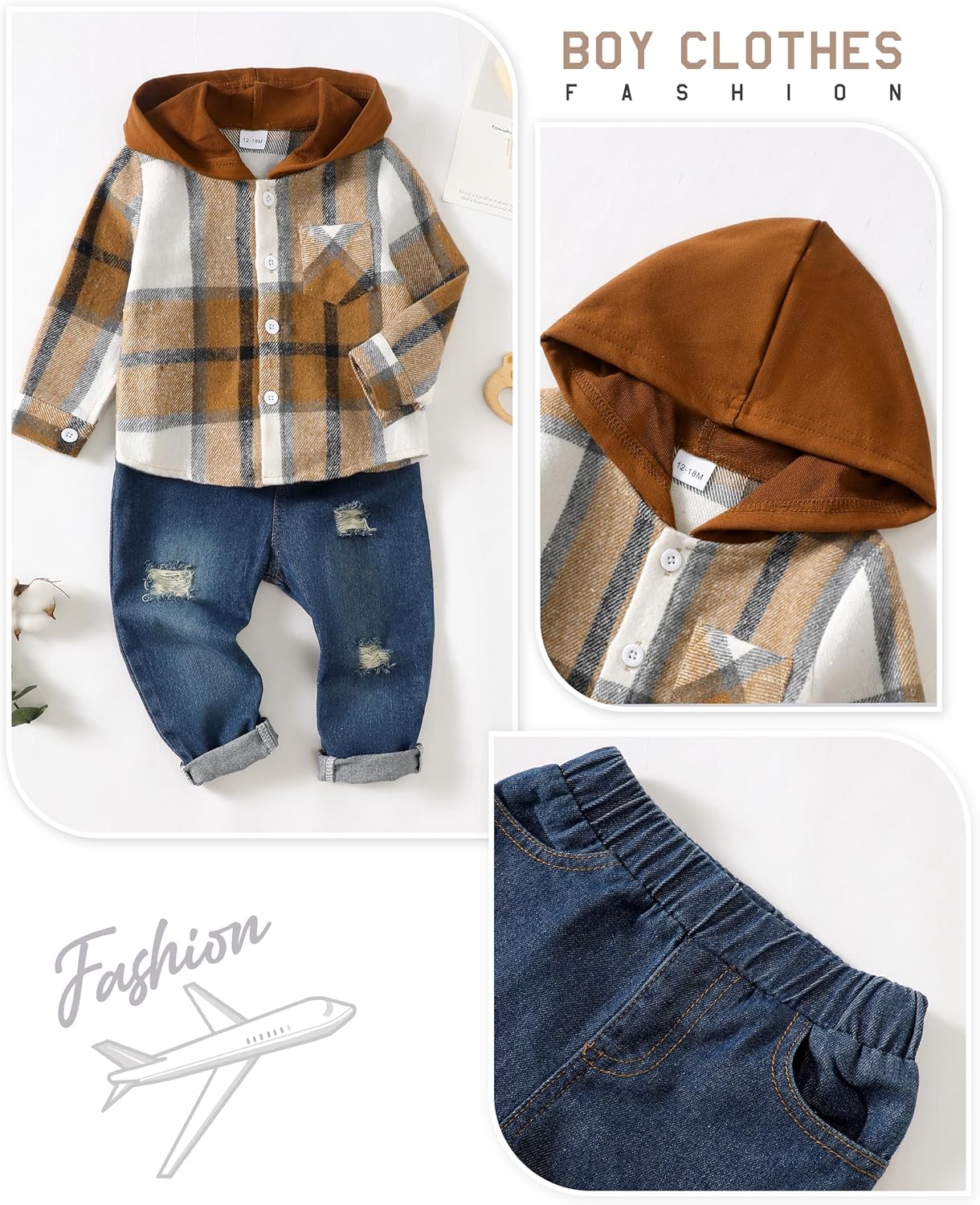 Renotemy Toddler Baby Boy Clothes Denim Outfits Infant Hooded Sweatshirt Jeans Pants Little Boys Clothing