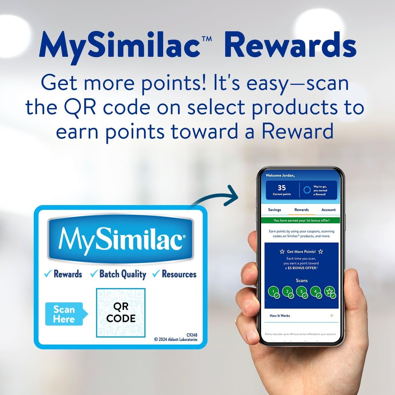 EARN MORE REWARD POINTS: Scan the MySimilac QR code on selected products to accumulate points towards a bonus offer. Our closest formula to breast milk yet, Similac 3