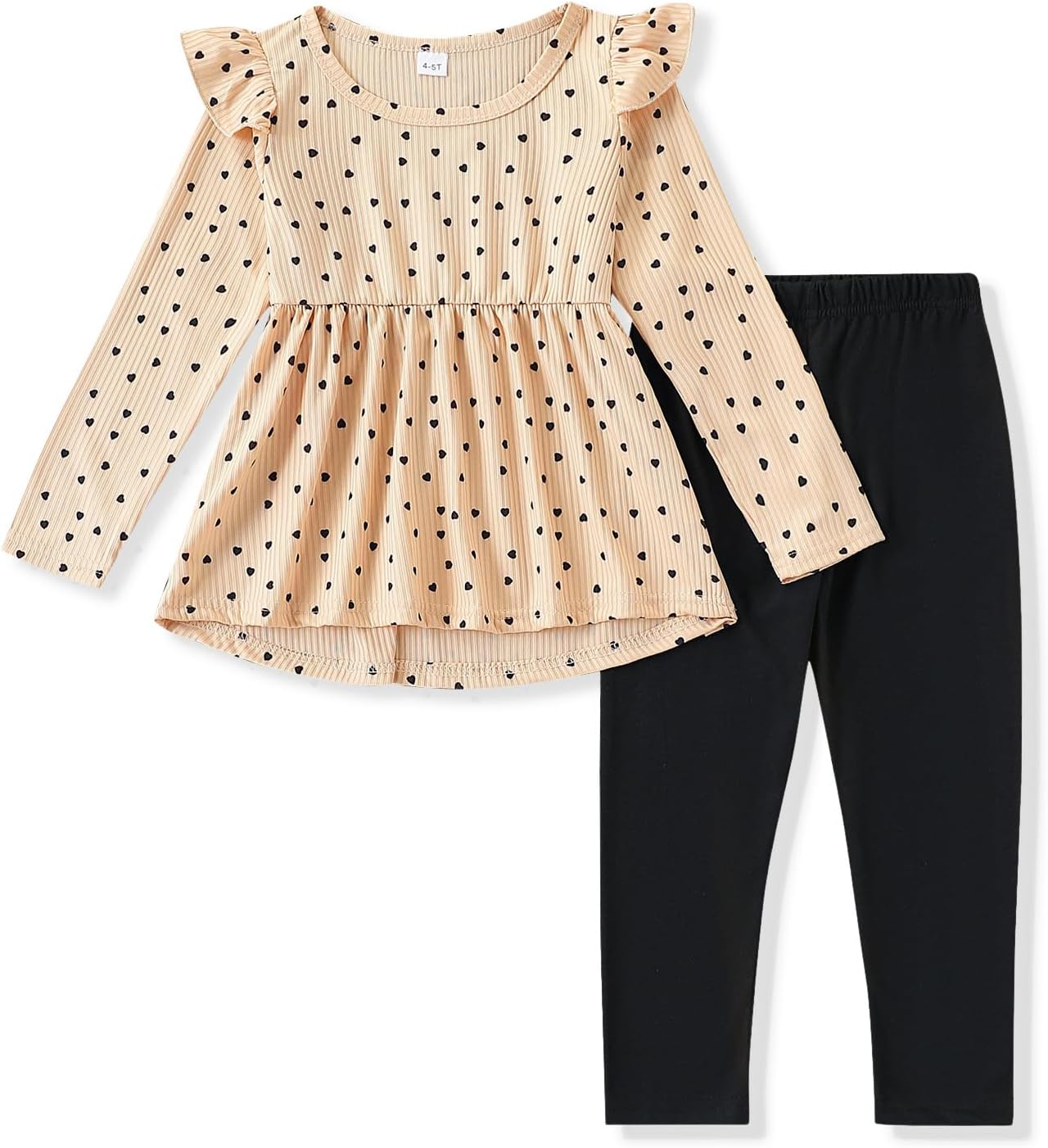 Toddler Girl Clothes Ruffle Long Sleeve Heart Print Tops and Pants 2PC Little Girl Winter Outfits Size (4-7T)