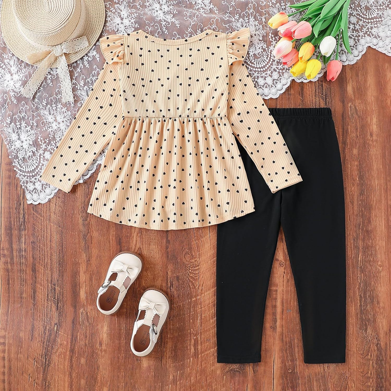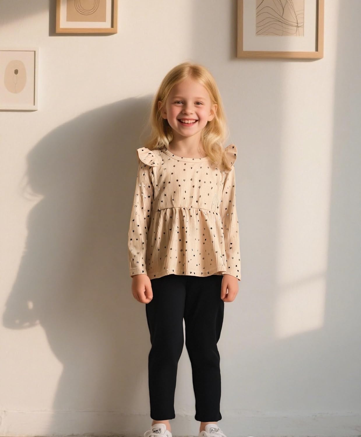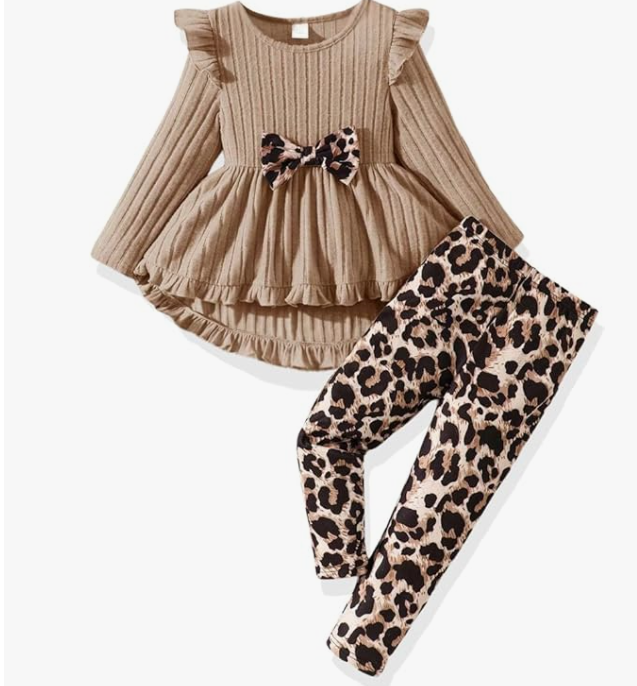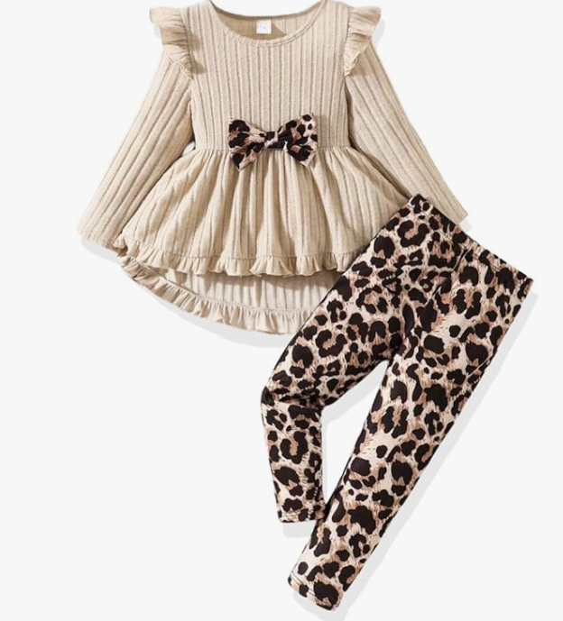 Material: High quality cotton blended; Comfortable casual little girls' clothing sets , breathable and skin-friendly, so your girl will wear it cozy and freely. Girls Pant Set: Ruffle long sleeve heart print top,pure color pants. Adorable 2 piece little kids girl autumn and winter outfits set. Suggested Age: 4-5T girl autumn cothes, 5-6T toddler girls fall clothing, 6-7T girl winter cothes, 7-8 girl autumn and winter cothes. Occassion: Toddler girls outfit for indoor, outdoor, photo shoot, new year, Christmas, autumn and winter,party or any occasion. Includes: 1 piece top and 1 piece pant.